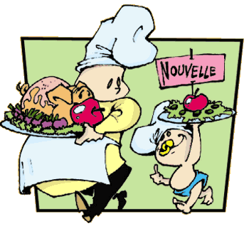 Vários foram os chefs que contribuíram para a nouvelle cuisine, entre eles: Michel Guérard, Jean e Pierre Troisgros e Alain Chapel. Mas o nome mais lembrado é sempre o de Paul Bocuse (até no nome a gente tem que fazer biquinho)! Hoje dá para perceber como a cozinha francesa foi importante até nas palavras que usamos, "emprestadas" do vocabulário francês: menu, filé mignon, vinagrete, glacê, chef e, é claro, restaurante! Aliás, você sabia que a palavra restaurante vem do nome de uma casa de pasto (comida) inaugurada no ano de 1767, em Paris, que se chamava restaurant? Agora que você está por dentro da história, que tal irmos logo para a parte da comida? |