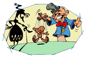 Índia: bonecos de vara, que existem também na ilha de Java (país vizinho). Europa: ali aparecem principalmente as marionetes, que são bonecos controlados por cordinhas presas nos seus braços, pernas e cabeça. Também há fantoches, que são construídos em cima de luvas e controlados pela mão. Estados Unidos: índios americanos usam teatrinho de bonecos em rituais mágicos. Brasil: o mamulengo é um dos principais tipos de bonecos de teatro, aparecendo principalmente no estado de Pernambuco. As pessoas que os fazem são chamados de mestres. Há até um museu na cidade pernambucana de Olinda, onde se vê muitos tipos de bonecos. As companhias de mamulengo viajam por toda a região do Nordeste do país, apresentando-se em grandes e pequenas cidades. |