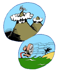 Quando o vento sopra contra as montanhas, o ar sobe e fica mais frio. O vapor de água no ar frio se condensa, formando nuvens. É por isso que o topo de certas montanhas fica sempre coberto de nuvens. Os oceanos contribuem para as mudanças de temperatura nos lugares próximos ao mar. A terra absorve o calor do Sol mais rápido que os mares, então, o ar que cobre a terra sobe, e um ventinho fresco sopra do mar para tomar o seu lugar. |