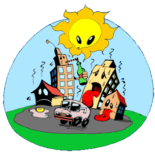 As cidades normalmente são mais quentes que as áreas rurais por causa dos automóveis, das indústrias e dos sistemas de ar condicionado, que produzem calor. Além disso, as ruas pavimentadas e as paredes das construções absorvem mais calor do sol e aquecem o ar. Mas esse aquecimento