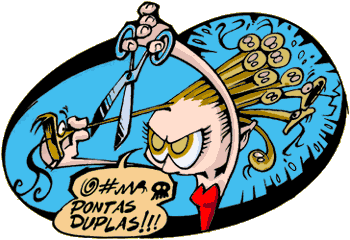 Cortes - O ideal seria cortar de 30 em 30 dias, mas quase ninguém faz isso. As meninas que querem deixar o cabelo comprido devem cortar de 3 em 3 meses. Pontas duplas - Sabe aquele fiozinho dividido em dois? "Claro que sei! Eu pego uma ponta e puxo a outra. O fio que sobra fica bem fininho!" Não! É totalmente errado fazer isso, pois deixa o fio que sobrou muito fraco. A melhor maneira de acabar com essas indesejáveis pontinhas duplas é cortar o cabelo. Não se esqueça que a falta de vitaminas, ferro e zinco deixa o cabelo fraco. "Mas onde eu encontro esses nutrientes?" Simples: é só comer bastante frutas, verduras e cereais! Ufa, quanta informação! Vamos dar uma relaxada com algumas curiosidades? |