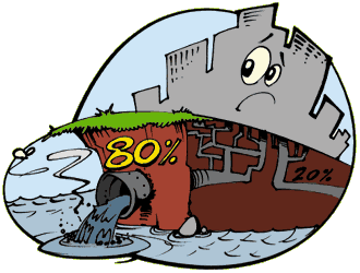 de coleta de esgotos, pois apenas 20% das águas de esgoto vão