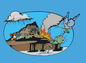 fumaça tóxica. O cheiro de um depósito de lixo